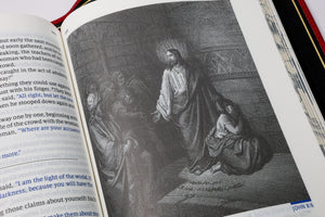 Featuring stunning custom-themed Drop Caps, cross-referencing, the Words of Christ in Blue, Edge-Line Binding, Full-Grain Goatskin leather cover, and over 200 illustrations from Gustave Dore, this edition is the perfect tool for serious Bible students.